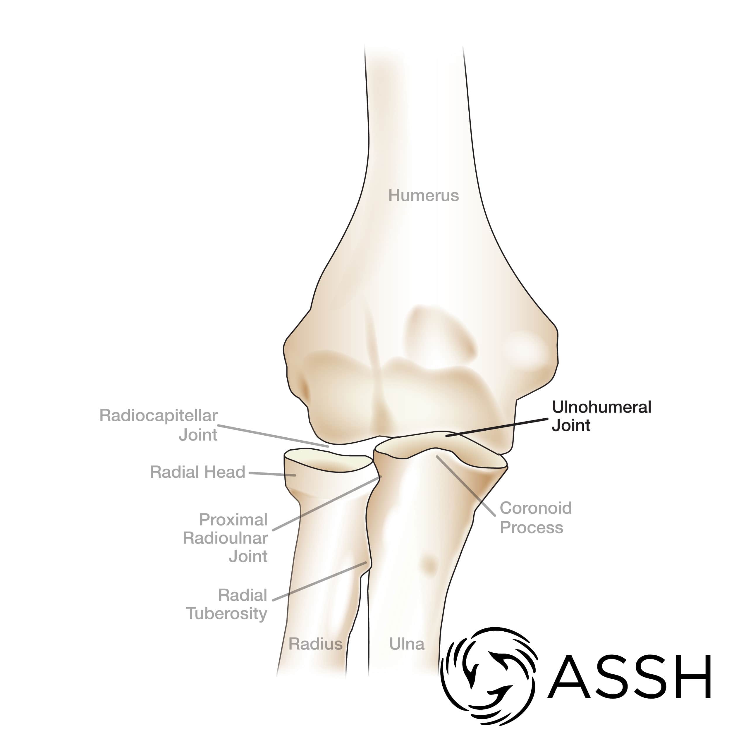 The ulnohumeral joint is formed by the coming together of the humerus and ulna bones. This joint is responsible for bending and extending the elbow. Ulnohumeral arthritis can cause pain and make it difficult to bend and straighten the elbow. This can make it painful and difficult to the get the hand to the mouth, wash hair, or hold a phone to your ear.